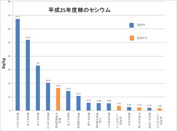 柿は元々Csの移行率の高い果物ですが、除染が行き届いていないのも測定結果に表れているのではないかと考えられます。