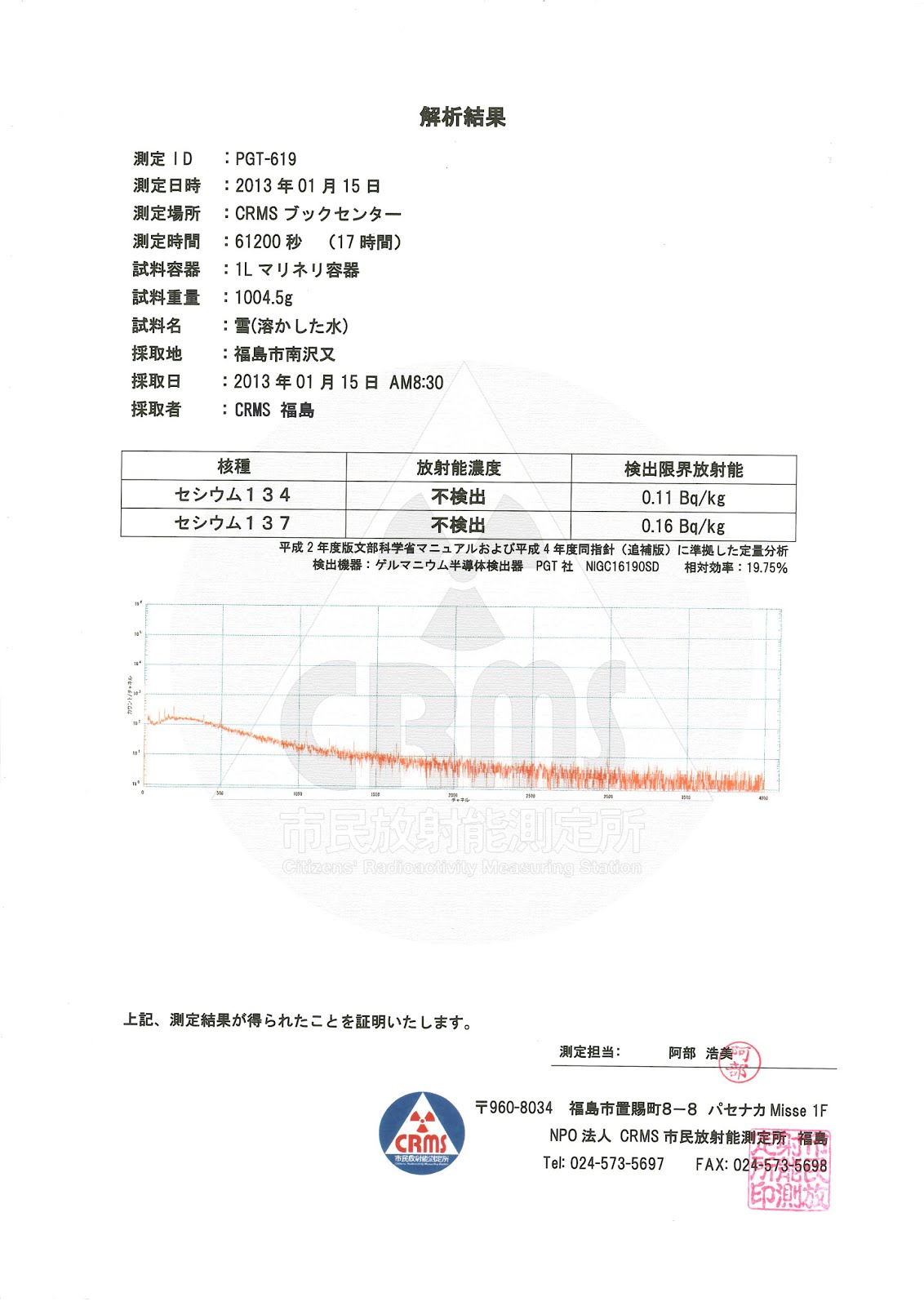 雪自体は15日のAM8:00に福島市南沢又で採取しました。
