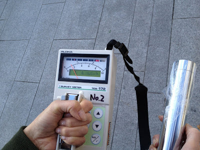 1~2歩、歩いただけなんですが意外に空間線量の差が大きいことに驚きました。
