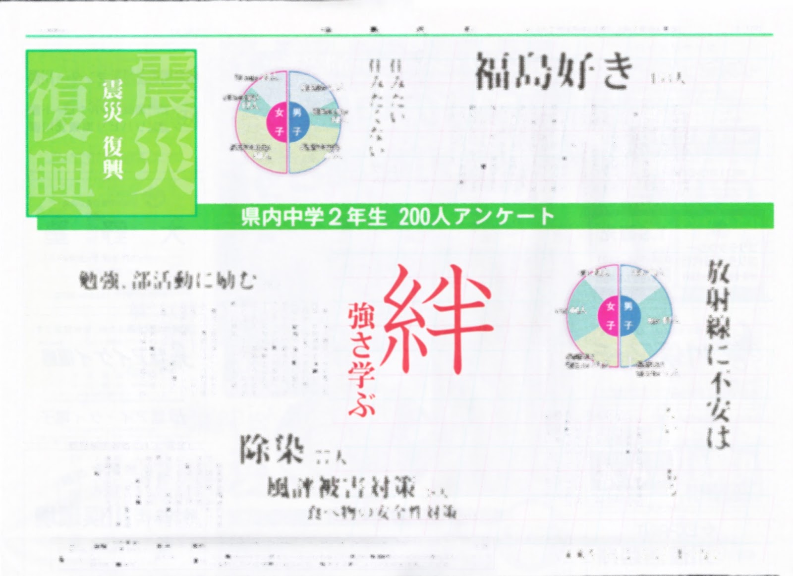 1月3日の福島民報の第2朝刊では福島県内中学2年生200人にアンケートをした結果が掲載されている。