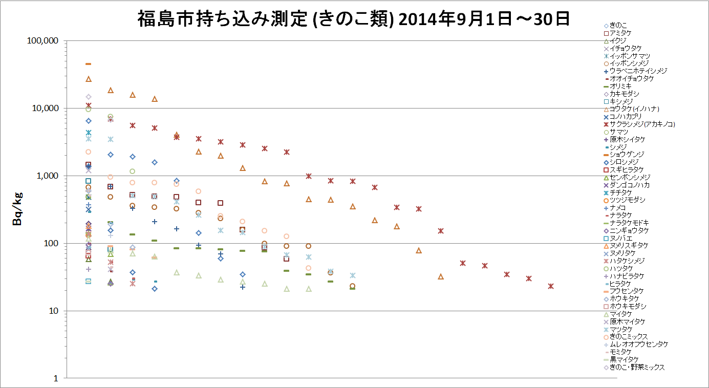 福島市の平成26年9月1日から9月30日の測定結果より「きのこ」について