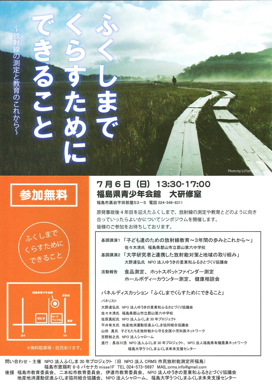 「原発事故後4年目を迎えたふくしまで、放射線の測定や教育とどのように向き合っていったらよいかについてシンポジウムを開催します。
